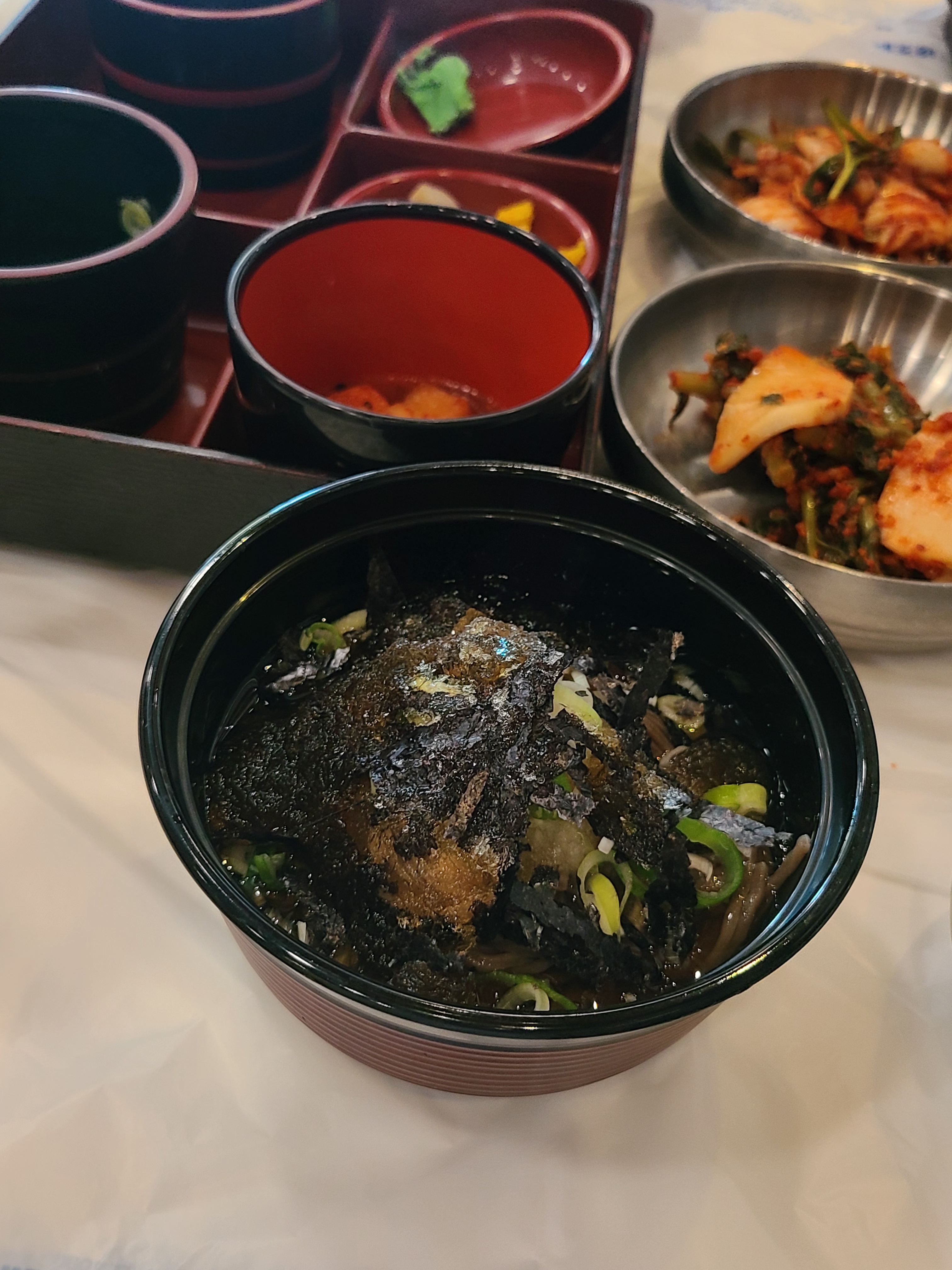주말에는 대기줄도 길어서 지나쳤는데 평일에 사람없어서 바로 쏙 들어갔다. 가게 내 손님 중 마을 동네 어르신들이 많아서, 여행객들이 따라 들어가는 것 같다. 반찬도 정갈하고 소바와 칼국수 모두 깔끔한 맛!