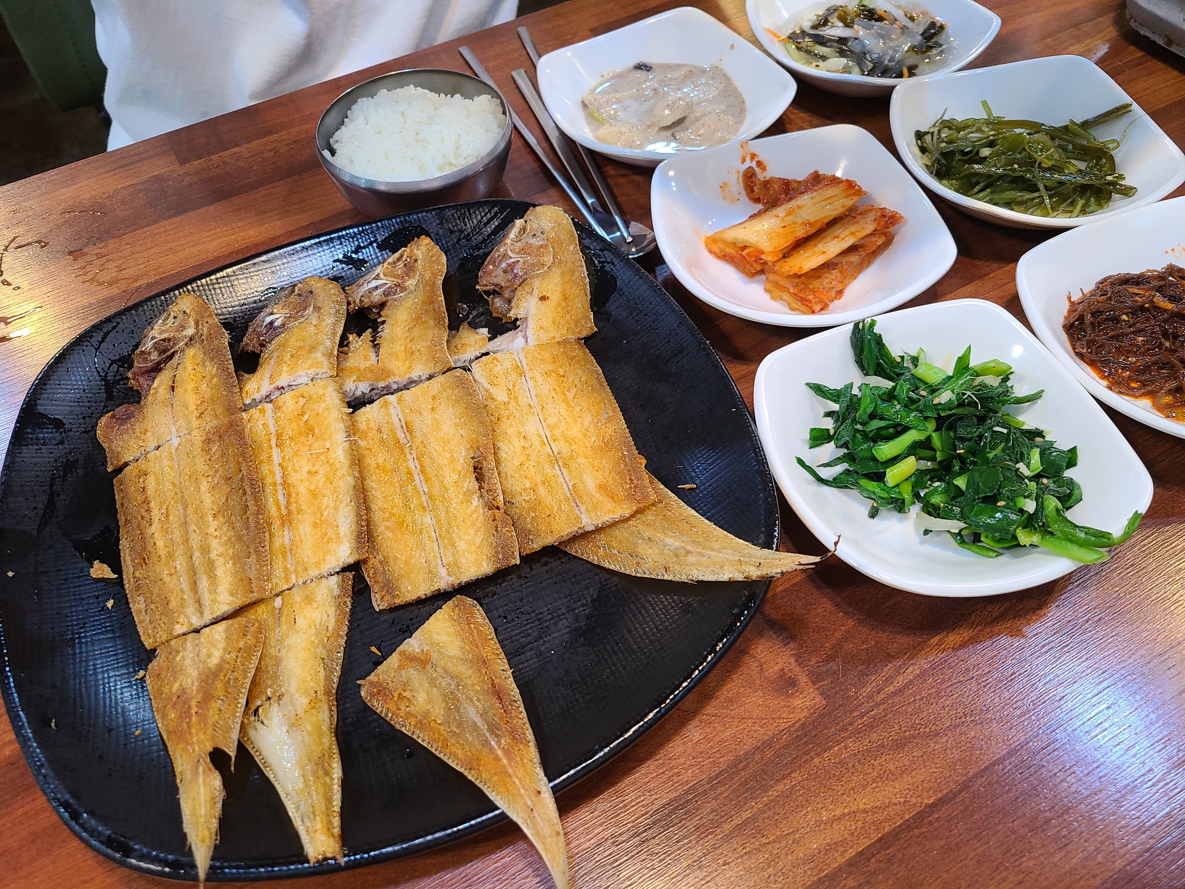 1인 정식 2개 시켜서 박대 4마리, 반찬도 깔끔하니 맛있고 옆에 탕을 주시는데 얼큰하니 맛있었다.