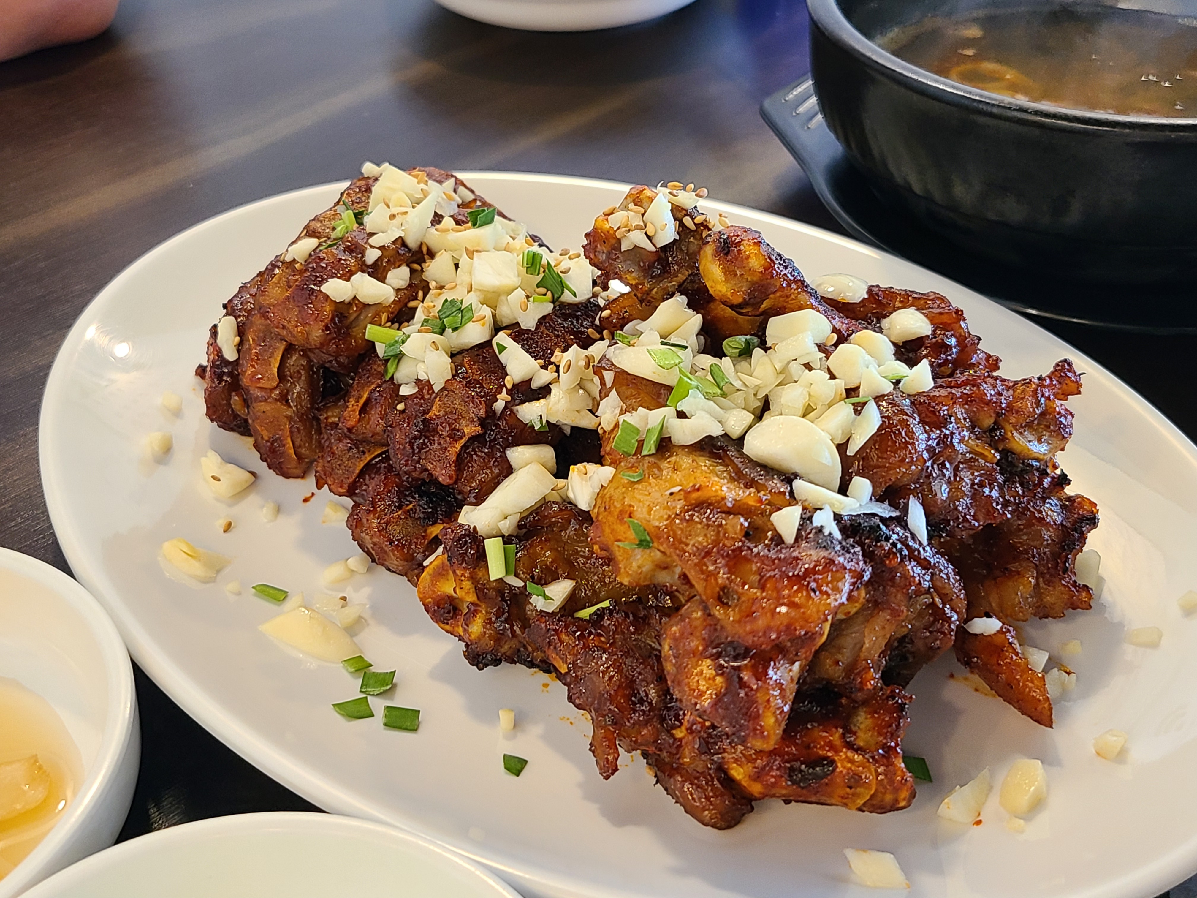 왼쪽이 돼지꼬리 오른쪽이 족발이다. 양념이 같음에도 우리 입에는 돼지꼬리가 배로 맛있었다. 식감은 족발에 붙은 쫄깃한 비계부분!